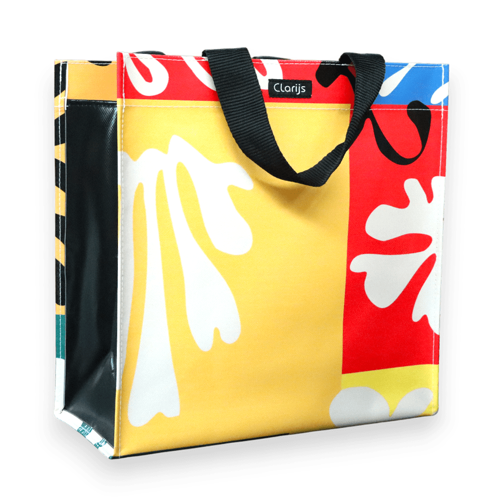Entdecke den Shopper Matisse Colorblock – ART edition von Clarijs. Dieser trendige Shopper verfügt über einen auffälligen Print, der vom Werk La Gerbe von Matisse inspiriert ist. Der Shopper wurde so entworfen, dass er perfekt in die doppelten Fahrradtaschen Er lässt sich leicht aus der Fahrradtasche entnehmen und bequem tragen. Dank seines durchdachten Formats passt problemlos ein Sixpack mit 6 Flaschen à 1,5 Liter hinein, wodurch die Tasche auch für schwerere Einkäufe geeignet ist.