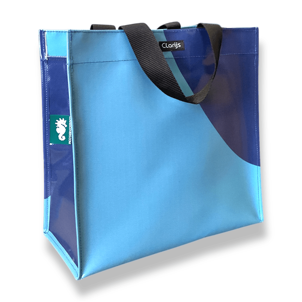 Der recycelte Lkw-Stoff ist megastark und hält intensivem Gebrauch sowie langfristiger Belastung stand. Alle von uns verwendeten Materialien stammen aus der EU, und die handgefertigte Kollektion von Clarijs bietet nur das Beste. Sie können die Tasche einfach mit einem feuchten Tuch abwischen oder mit milder Seife und Wasser reinigen. Kaufen Sie jetzt diesen einzigartigen Shopper ReCYCLEd!