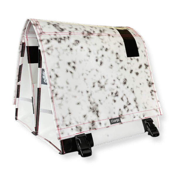 De Dubbele Fietstas reCYCLEd – Transit van Clarijs Fietstassen biedt een duurzame en stoere oplossing voor het vervoeren van jouw spullen tijdens jouw fietsavonturen. Deze fietstassen worden met de hand gemaakt van reCYCLEd vrachtwagen doek, dit maakt elke fietstas uniek.