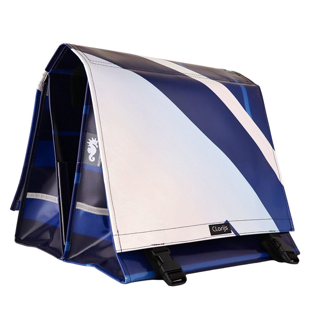 The Double Bike Bag reCYCLEd – Source de Vie 3 by Clarijs is an eco-friendly and strurdy bike bag for the conscious cyclist. This bag offers a sustainable and practical solution for carrying your belongings during your cycling adventures.