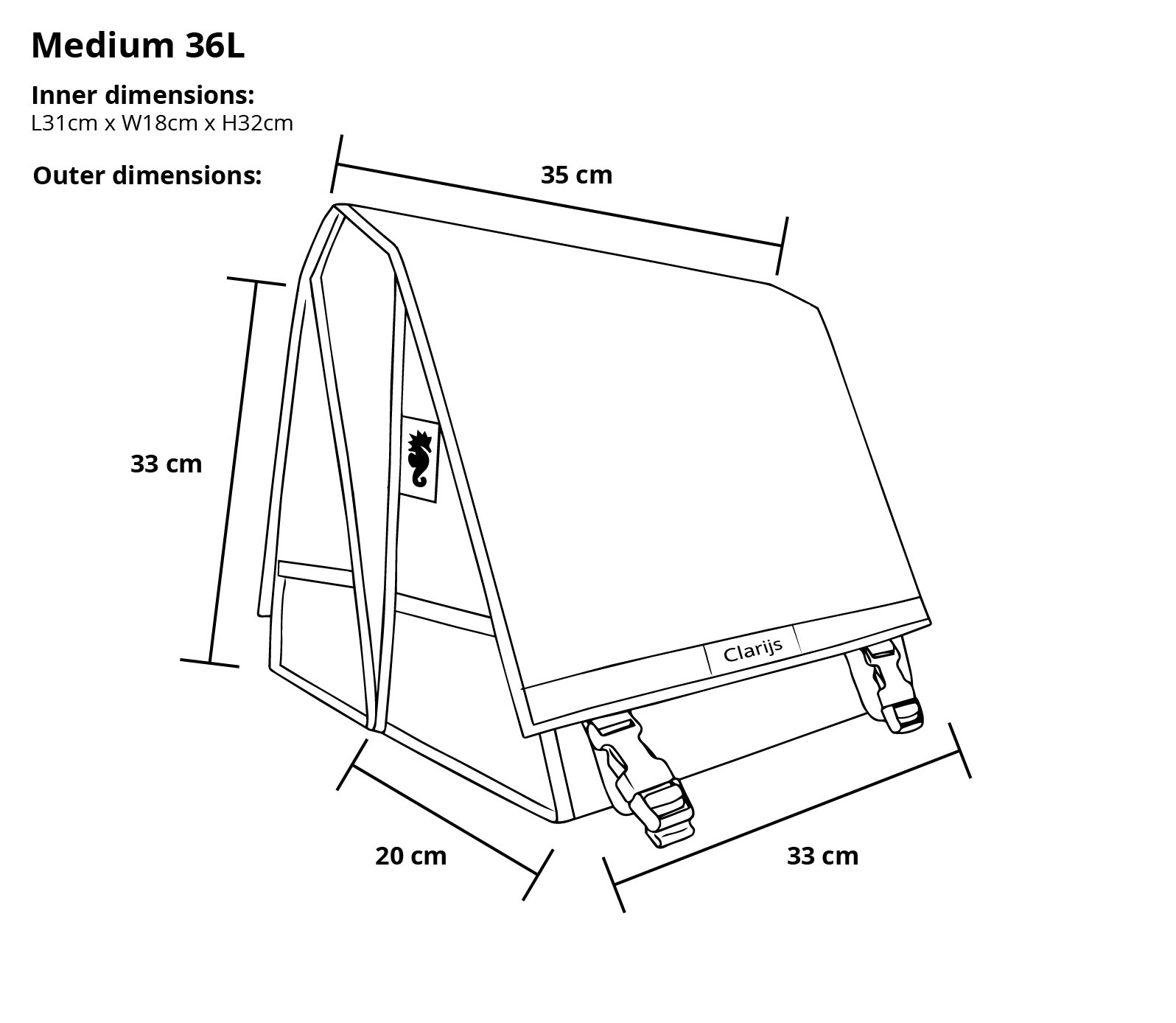 The Double Bike Bag Matt Black Medium – 36 Litres from Clarijs is ideal for daily use on both an electric bike and a regular bicycle. This double bike bag is made from strong Bisonyl PVC fabric, a water-repellent material that protects your belongings from rain, dirt and intensive use. Thanks to the reflective elements on the front and back, you are more visible in the dark and in poor weather conditions.