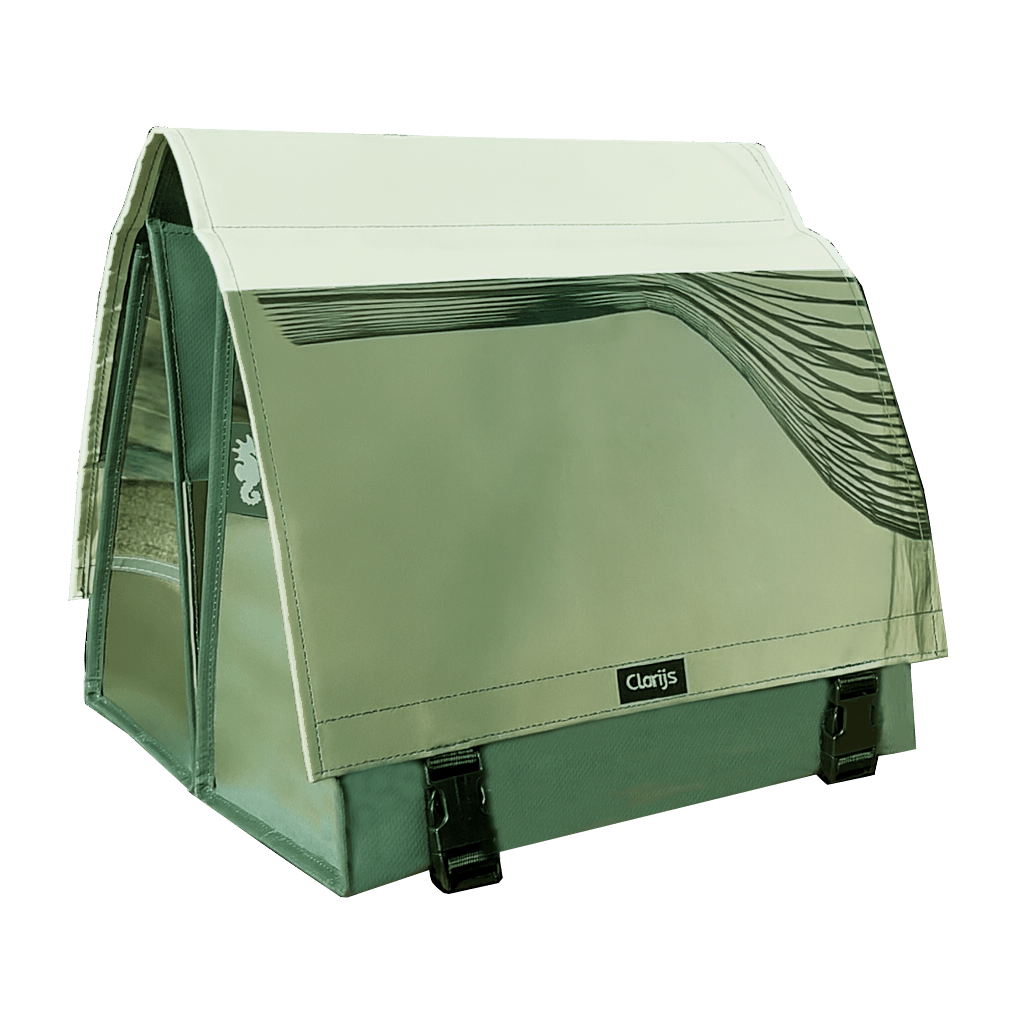 The Double Bike Bag reCYCLEd – Green & White by Clarijs Covers is an eco-friendly and unique bicycle bag for the conscious cyclist.