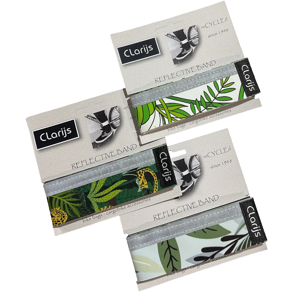 What makes this accessory special: the Reflective Band is available in as many as 15 different prints. All designs perfectly match the matching Double Panniers from Clarijs. So you combine safety with style, and your strap forms a beautiful set together with your pannier.