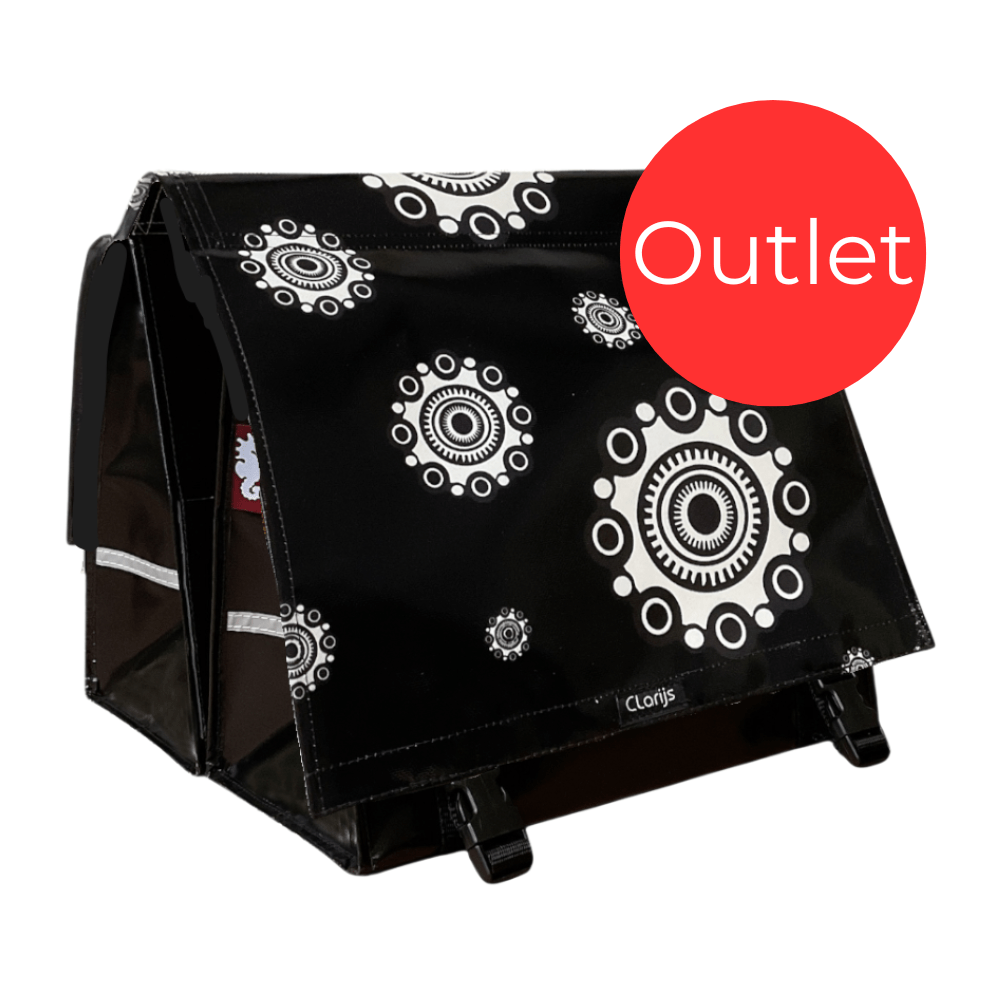 De Outlet – Dubbele Fietstas Zeeuwse Knoppen Zwart XL is een handgemaakte en volledig functionele fietstas van Clarijs. Dit exemplaar is foutieve samenstelling van kleurcombinaties en is daarom opgenomen in onze outlet. Met 35% korting profiteer je van dezelfde kwaliteit en duurzaamheid, maar nu extra scherp geprijsd.