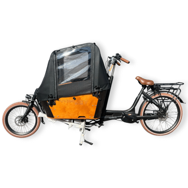 De regentent sluit perfect aan op het gebruik van de Vogue Carry 2 als elektrische gezinsbakfiets. Dankzij de ruime laadbak en het stabiele rijgedrag blijven kinderen en bagage comfortabel beschermd tegen regen en wind, ook tijdens langere ritten of wisselende weersomstandigheden.